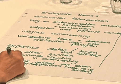 Onder leiding van Suzanne Witteveen van Bureau de Bedoeling hebben we tijdens deze bijeenkomsten met elkaar stil gestaan bij wat de huidige planperiode (2021-2025) ons tot nu toe heeft opgeleverd en bij wat we met elkaar nog te doen hebben. Ook hebben we geïnventariseerd wat goed gaat en wat nog beter kan.