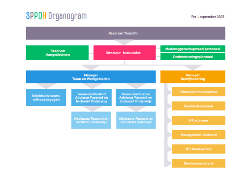 De organisatie van SPPOH bestaat uit een bureauorganisatie onder leiding van de directeur-bestuurder, die over het bestuur en het gevoerde beleid verantwoording aflegt aan een Raad van Toezicht. Om de samenwerking tussen alle schoolbesturen te versterken, vormen alle besturen samen een Raad van Aangeslotenen. Ouders en personeel hebben inspraak via de Ondersteuningsplanraad.